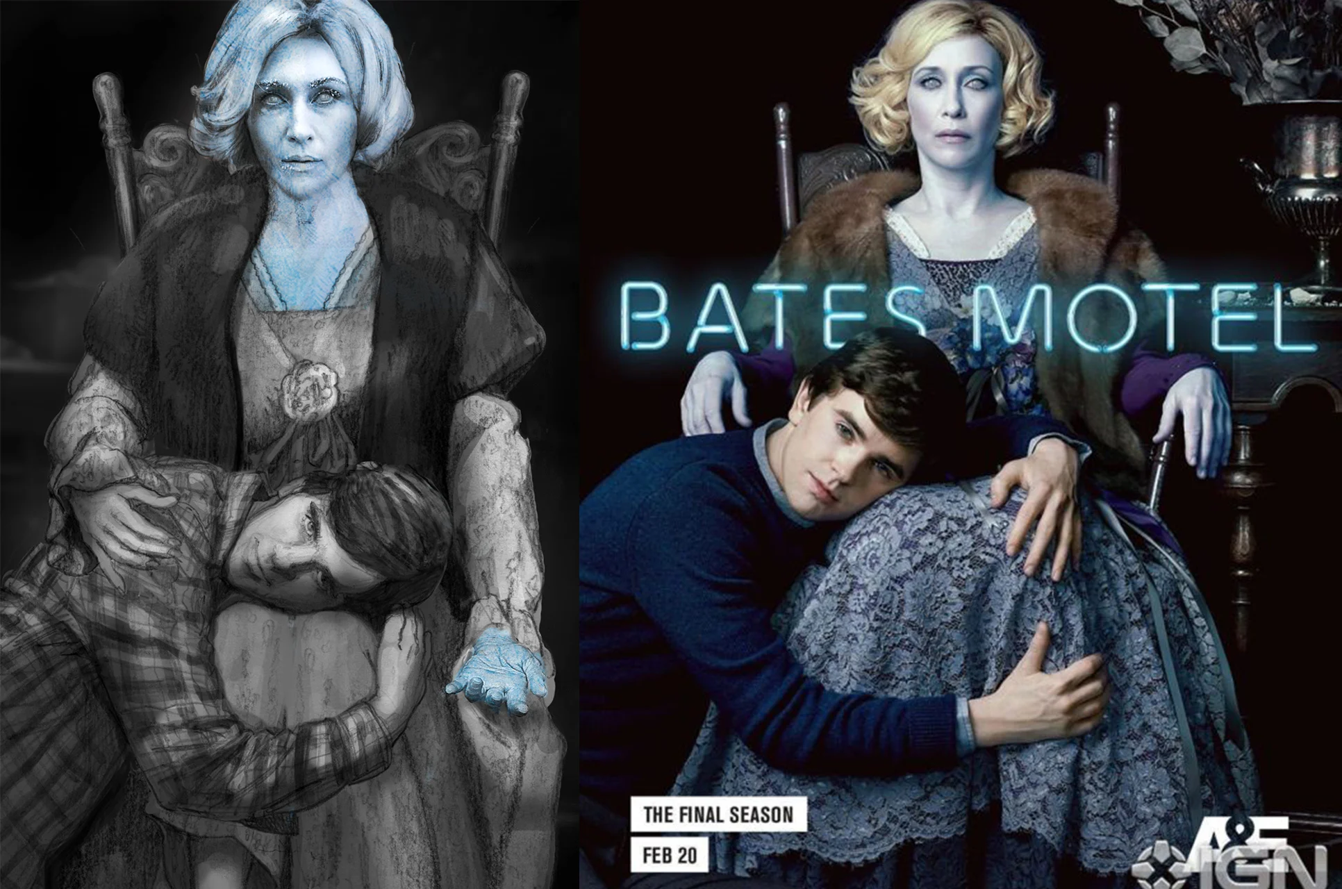 A&E’s long running thriller “Bates Motel” has been a particular favorite of Outlines Inc. because we have worked on all of the Iconic imagery associated with the hit series since the shows inception five seasons ago! Check out the dramatic side by side samples and see how closely the end result emulates the conceptual illustration produced by Chris and the team at Outlines.